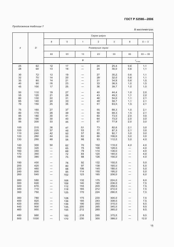 ГОСТ Р 52598-2006 Подшипники качения. Радиальные и радиально-упорные подшипники. Основные размеры. Размерные ряды