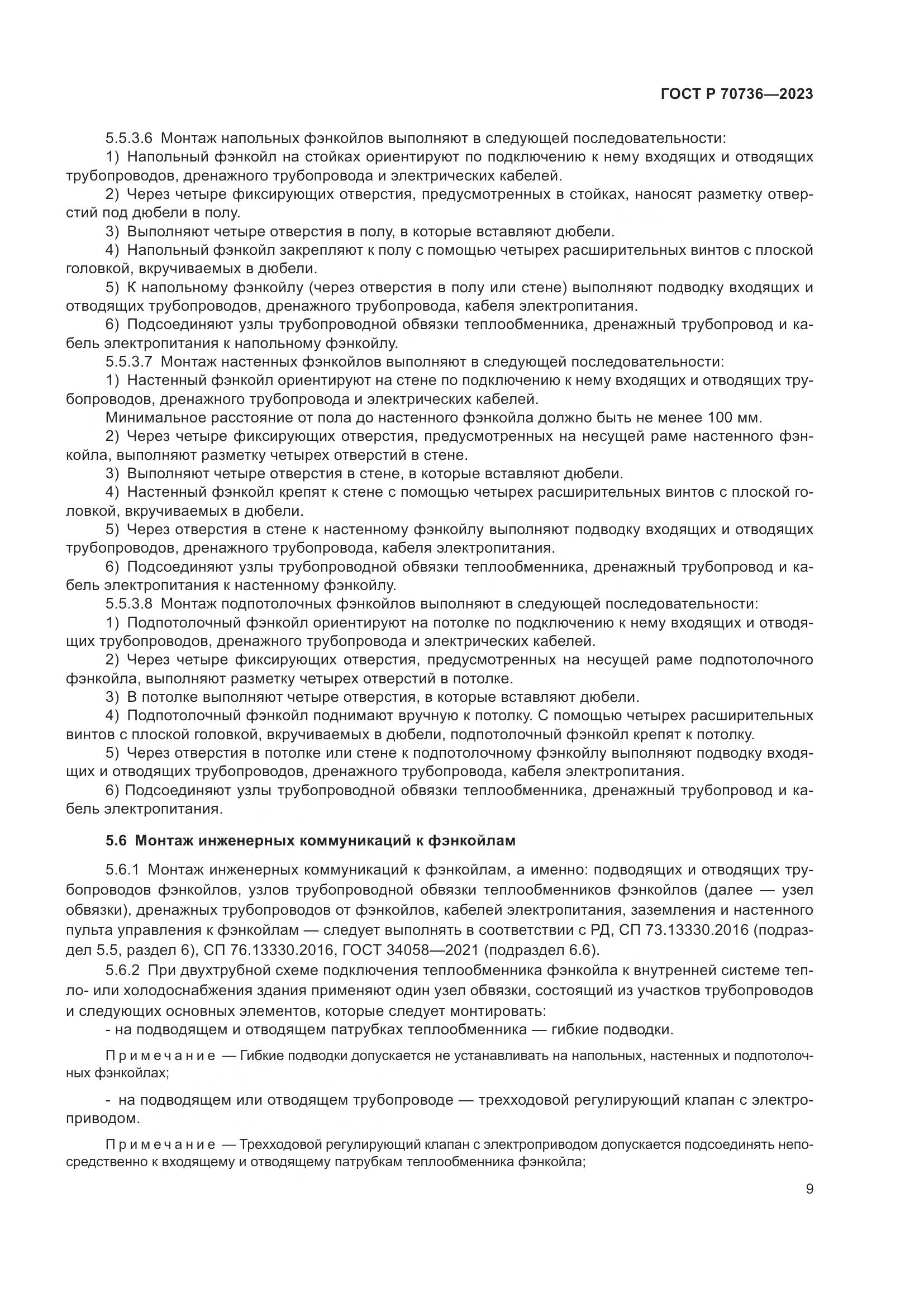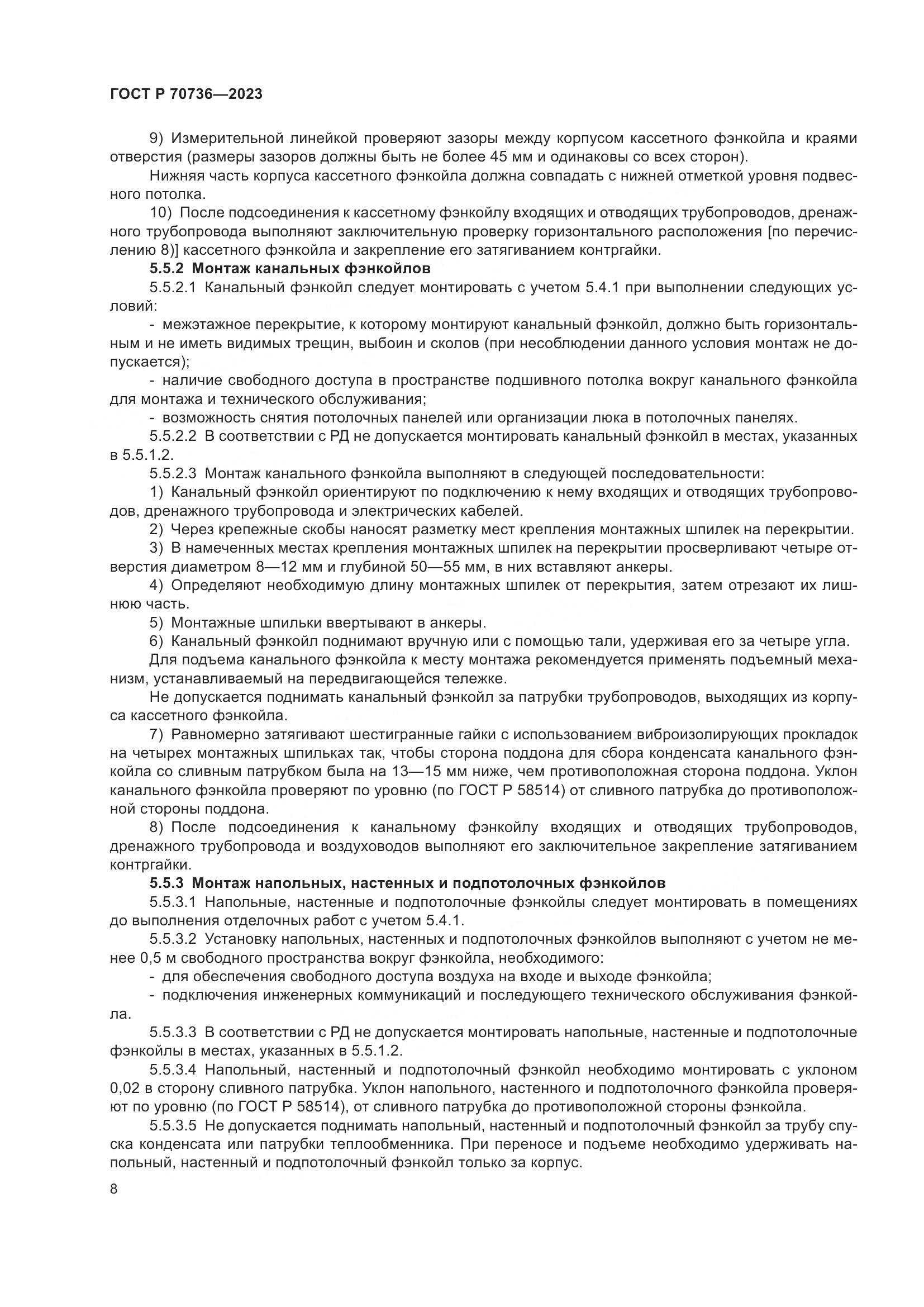 ГОСТ Р 70736-2023 Инженерные сети зданий и сооружений внутренние. Монтаж и пусковая наладка фэнкойлов. Правила и контроль выполнения работ