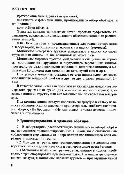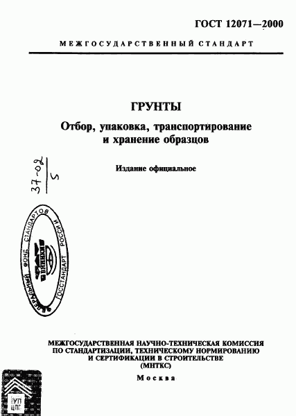 ГОСТ 12071-2000 Грунты. Отбор, упаковка, транспортирование и хранение образцов