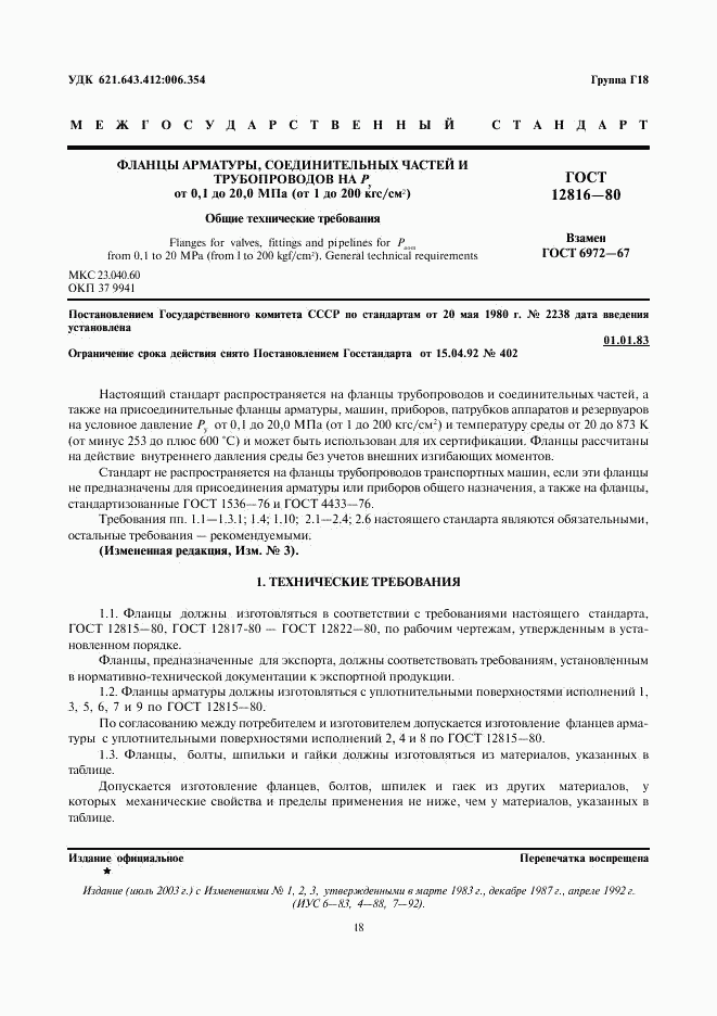 Изменение к ГОСТ 12816-80. Восстановлен на территории РФ
