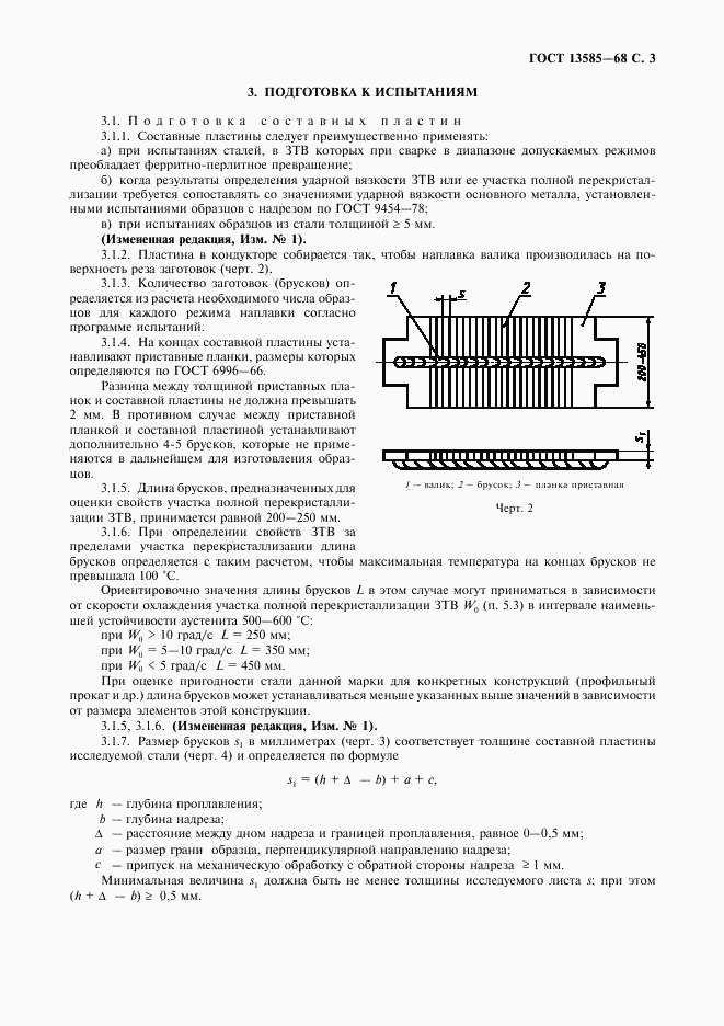 ГОСТ 13585-68 Сталь. Метод валиковой пробы для определения допускаемых режимов дуговой сварки и наплавки