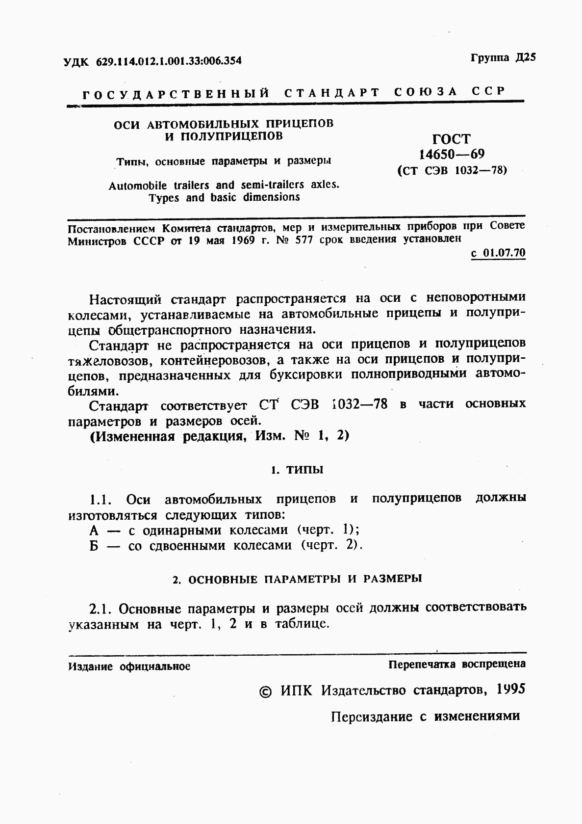 ГОСТ 14650-69 Оси автомобильных прицепов и полуприцепов. Типы, основные параметры и размеры