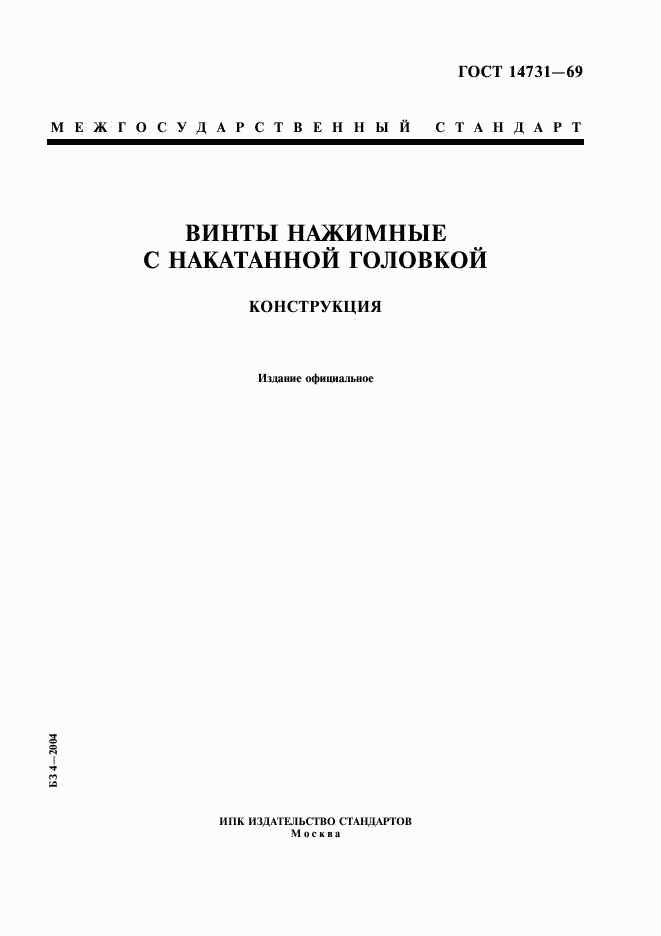 ГОСТ 14731-69 Винты нажимные с накатанной головкой. Конструкция