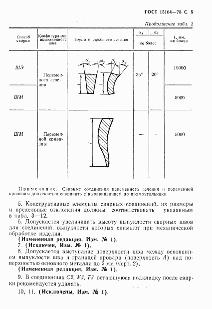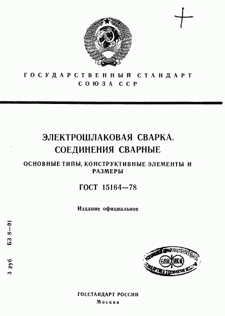 ГОСТ 15164-78 Электрошлаковая сварка. Соединения сварные. Основные типы, конструктивные элементы и размеры