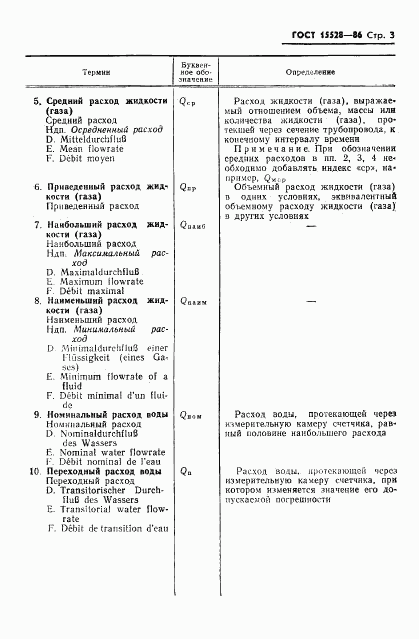 ГОСТ 15528-86 Средства измерений расхода, объема или массы протекающих жидкости и газа. Термины и определения