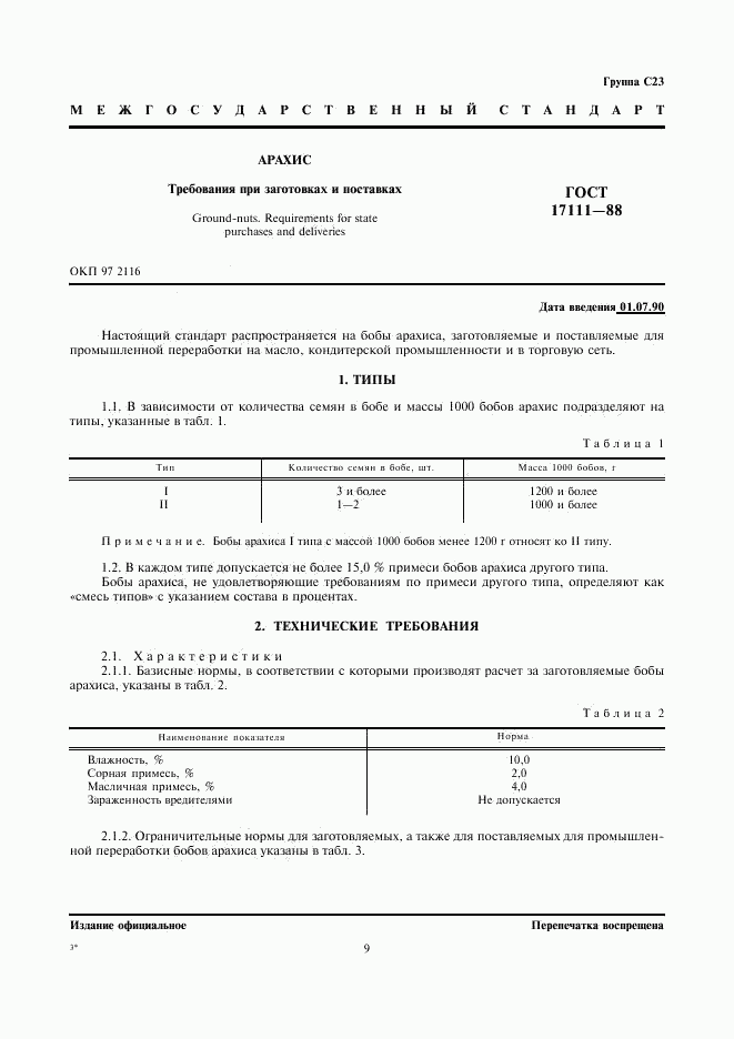 ГОСТ 17111-88 Арахис. Требования при заготовках и поставках
