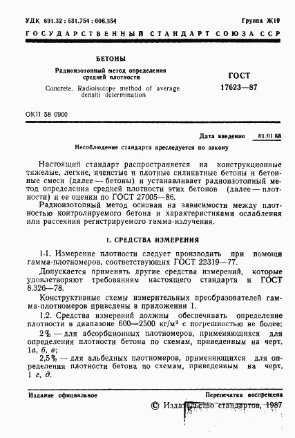 ГОСТ 17623-87 Бетоны. Радиоизотопный метод определения средней плотности