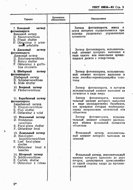 ГОСТ 18836-83 Затворы фотоаппаратов. Термины, определения и буквенные обозначения
