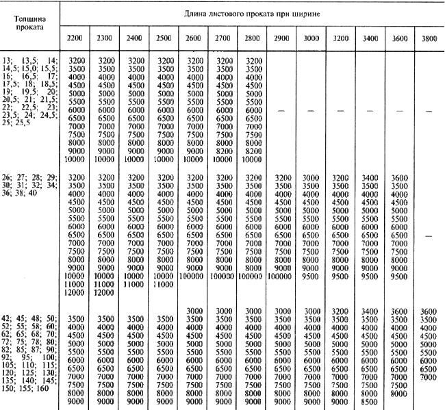 Примечание. При поставке листов по форме N 1 допускается наличие не более трех других размеров, выбранных из данной таблицы, в количестве не более 20% от партии, кровельного и оцинкованного проката не более 10% от партии.