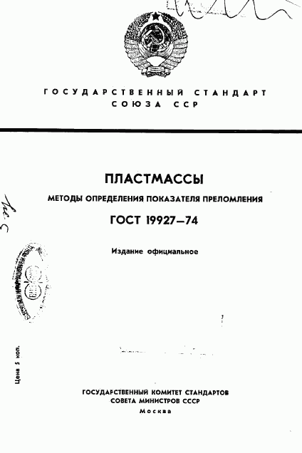 ГОСТ 19927-74 Пластмассы. Методы определения показателя преломления