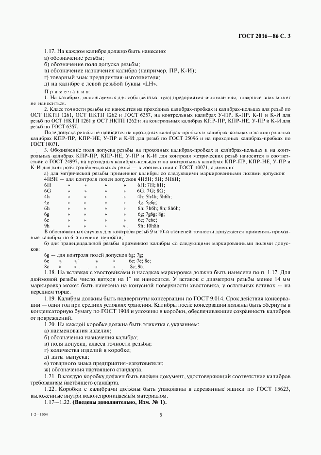 ГОСТ 2016-86 Калибры резьбовые. Технические условия