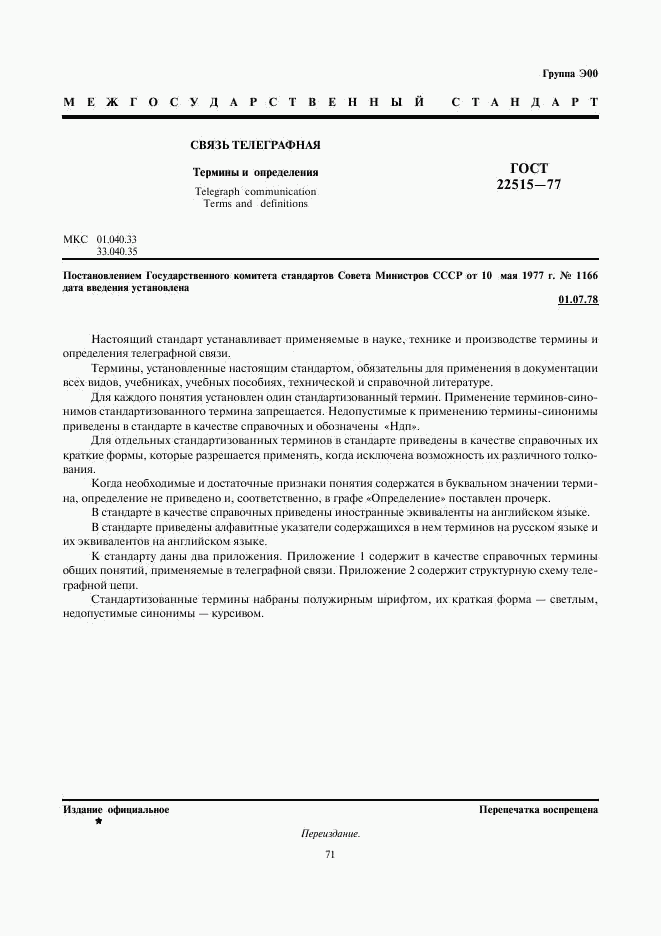 Категории ГОСТ 22515-77 по ОКС:- 33. Телекоммуникации, аудио и видео