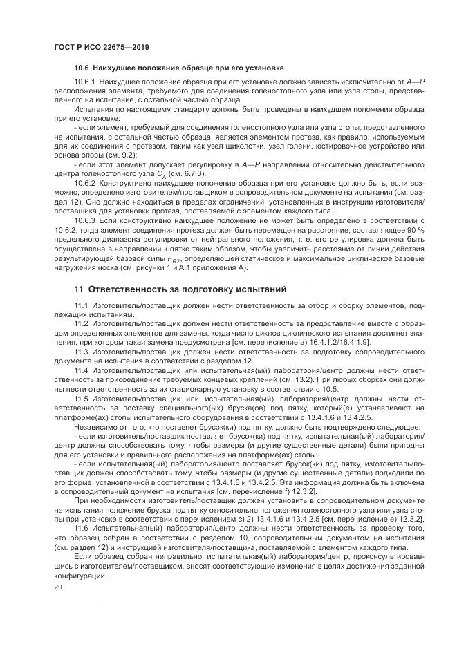 ГОСТ Р ИСО 22675-2019 Протезирование. Испытание голеностопных узлов и узлов стоп протезов нижних конечностей. Требования и методы испытаний