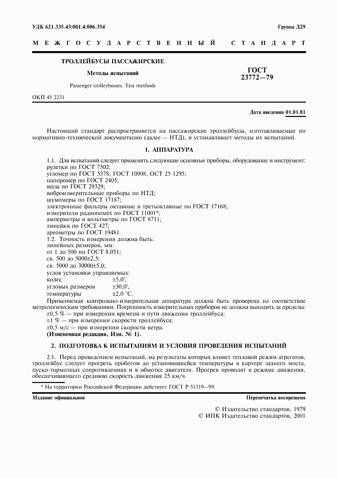 ГОСТ 23772-79 Троллейбусы пассажирские. Методы испытаний