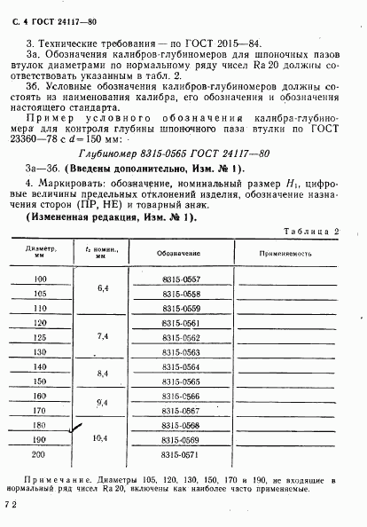 ГОСТ 24117-80 Калибры-глубиномеры шпоночные для отверстий диаметром св. 90 до 200 мм. Конструкция и размеры