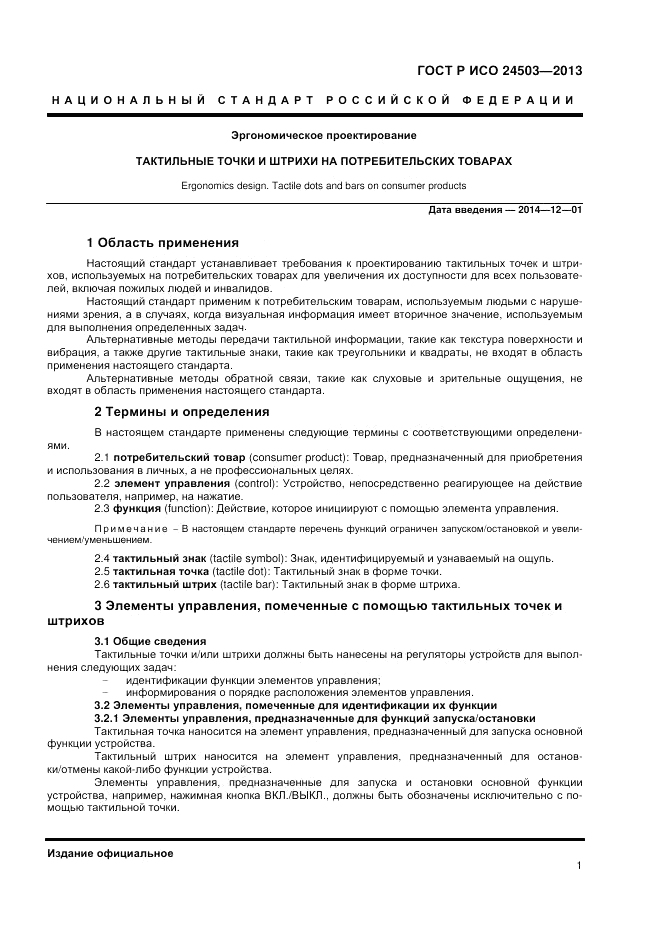 - Настоящий стандарт устанавливает требования к проектированию тактильных точек и штрихов, используемых на потребительских товарах для увеличения их доступности для всех пользователей, включая пожилых людей и инвалидов. Настоящий стандарт применим к потребительским товарам, используемым людьми с нарушениями зрения, а в случаях, когда визуальная информация имеет вторичное значение, используемым для выполнения определенных задач