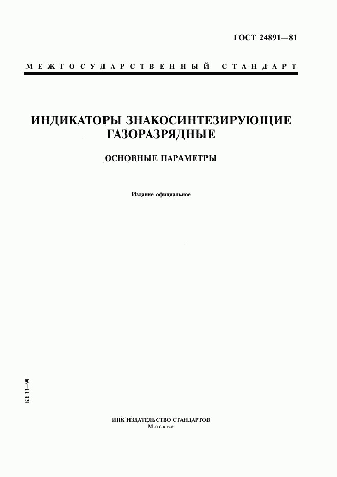 ГОСТ 24891-81 Индикаторы знакосинтезирующие газоразрядные. Основные параметры