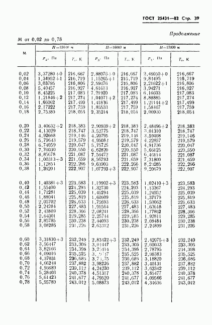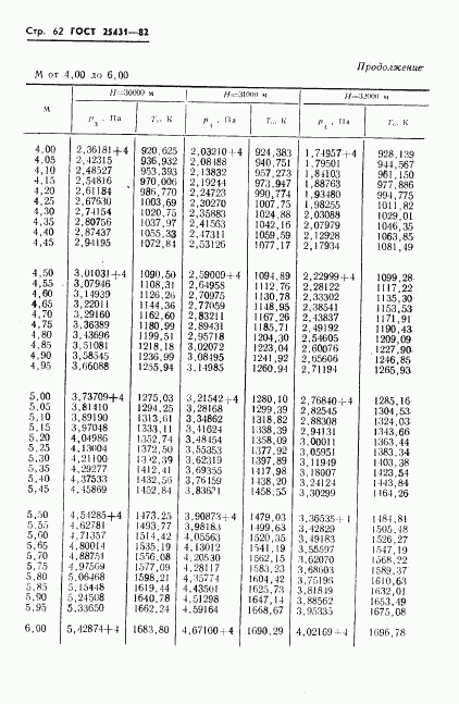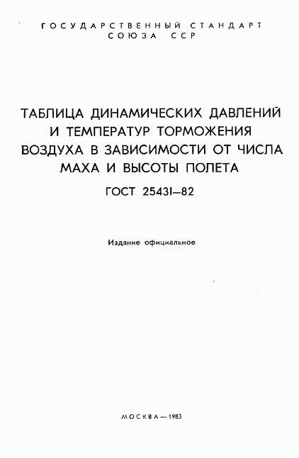 ГОСТ 25431-82 Таблица динамических давлений и температур торможения воздуха в зависимости от числа Маха и высоты полета