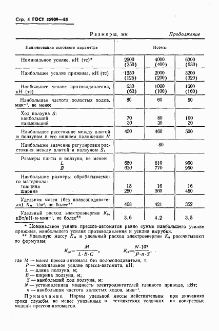 ГОСТ 25909-85 Прессы-автоматы для чистовой вырубки. Основные параметры и размеры