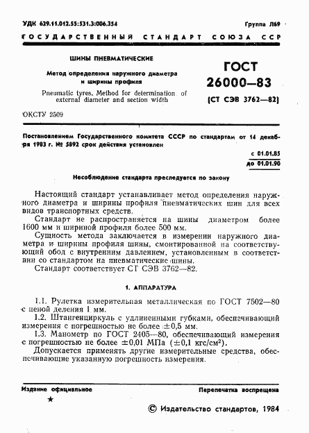 Старое значение: Шины пнeвмaтичecкиe. Meтoд oпpeдeлeния нapyжнoгo диaмeтpa и шиpины пpoфиля