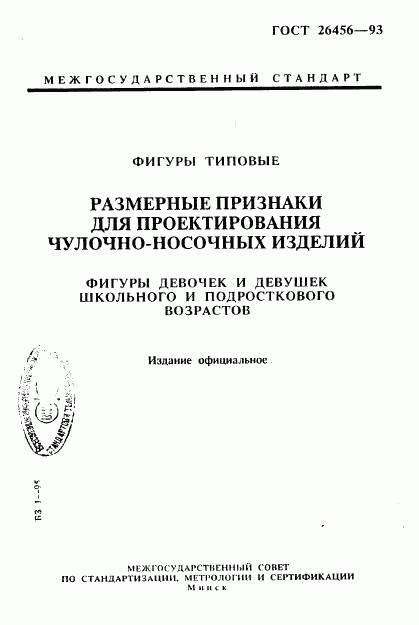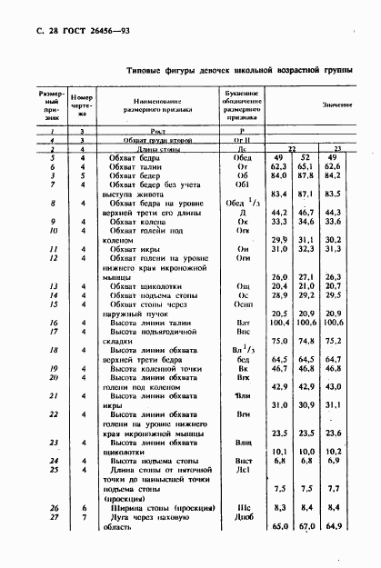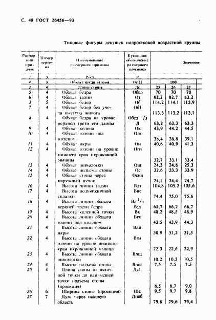 ГОСТ 26456-93 Фигуры типовые. Размерные признаки для проектирования чулочно-носочных изделий. Фигуры девочек и девушек школьного и подросткового возрастов