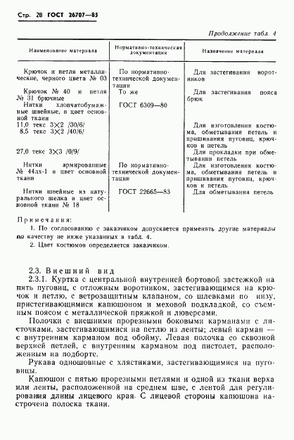 ГОСТ 26707-85 Костюм специальный с меховым утеплителем для военнослужащих. Технические условия