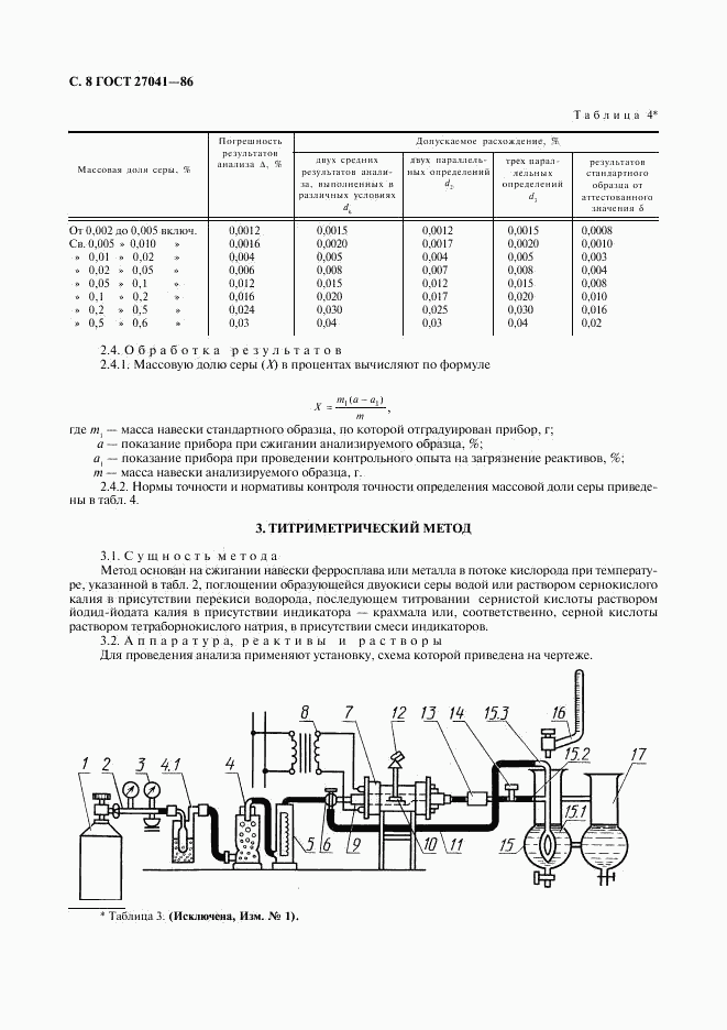 - Настоящий стандарт устанавливает кулонометрический, титриметрический и инфракрасно-абсорбционный методы определения серы в ферросплавах, металлических хроме и марганце (при массовой доле серы от 0,002 до 0,6%)