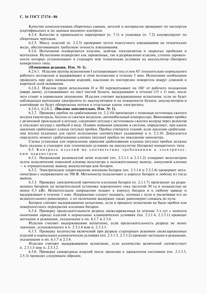 ГОСТ 27174-86 Аккумуляторы и батареи аккумуляторные щелочные никель-кадмиевые негерметичные емкостью до 150 А·ч. Общие технические условия