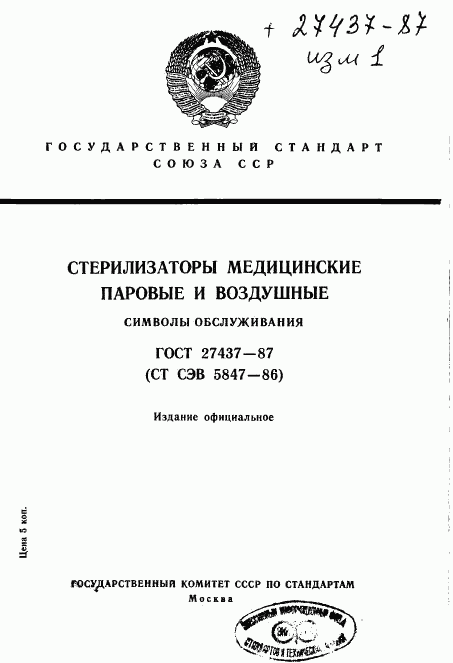 ГОСТ 27437-87 Стерилизаторы медицинские паровые и воздушные. Символы обслуживания