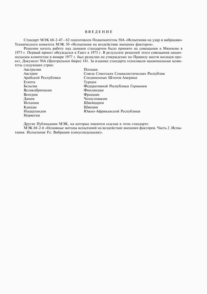 ГОСТ 28231-89 Основные методы испытаний на воздействие внешних факторов. Часть 2. Испытания. Крепление элементов, аппаратуры и других изделий в процессе динамических испытаний, включая удар (Еа), многократные удары (Еb), вибрацию (Fс и Fd), линейное ускорение (Gа) и руководство