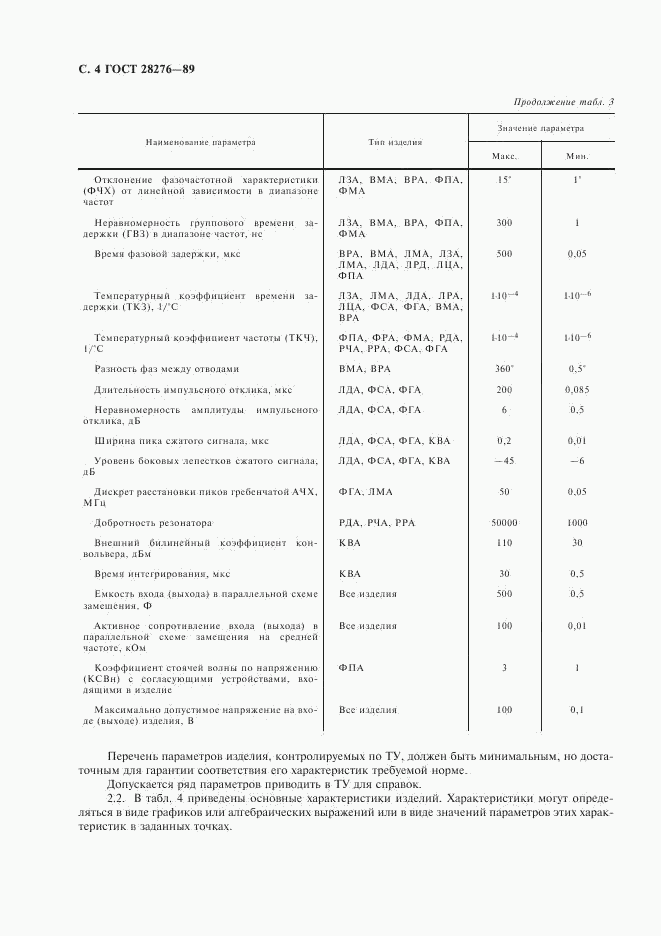 ГОСТ 28276-89 Изделия акустоэлектронные на поверхностных акустических волнах. Типы, основные параметры и методы измерений