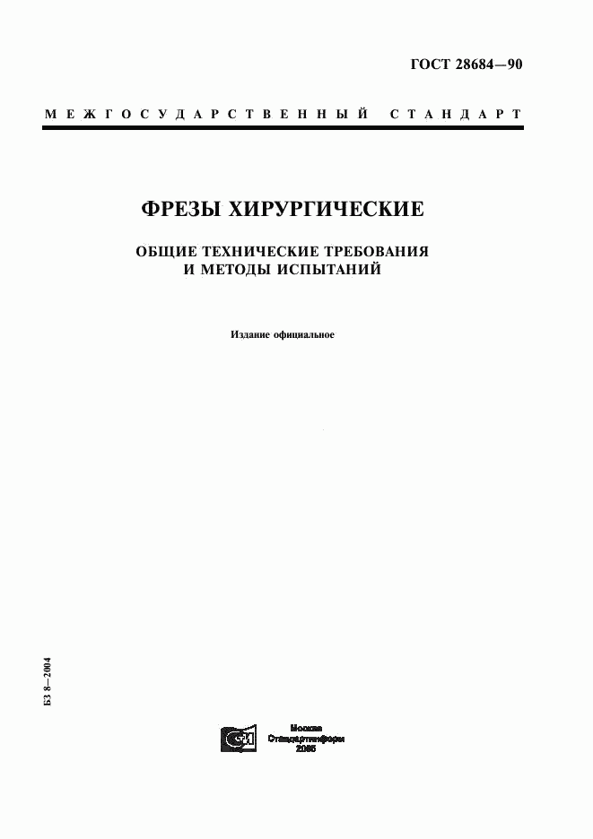 ГОСТ 28684-90 Фрезы хирургические. Общие технические требования и методы испытаний