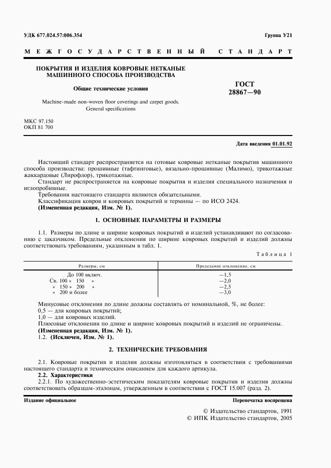 ГОСТ 28867-90 Покрытия и изделия ковровые нетканые машинного способа производства. Общие технические условия