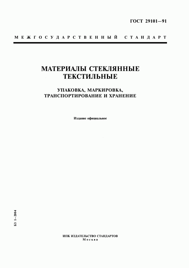 ГОСТ 29101-91 Материалы стеклянные текстильные. Упаковка, маркировка, транспортирование и хранение