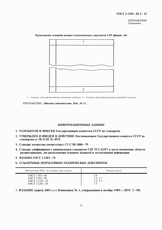Изменение №1 к ГОСТ 3.1103-82