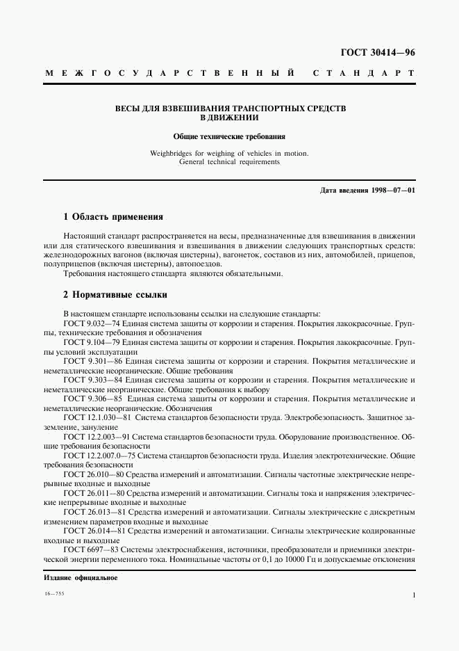 ГОСТ 30414-96 Весы для взвешивания транспортных средств в движении. Общие технические требования