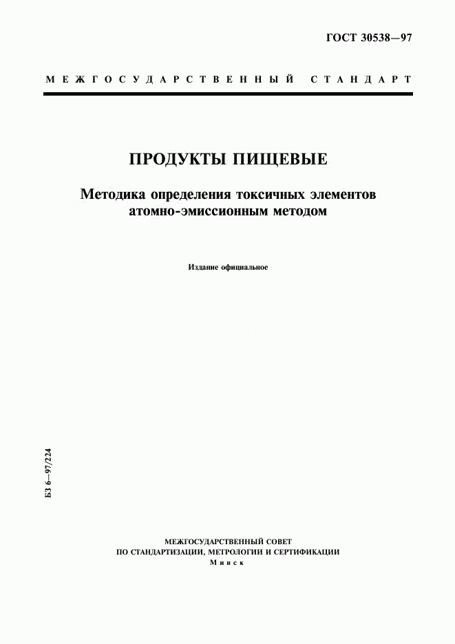 ГОСТ 30538-97 Продукты пищевые. Методика определения токсичных элементов атомно-эмиссионным методом