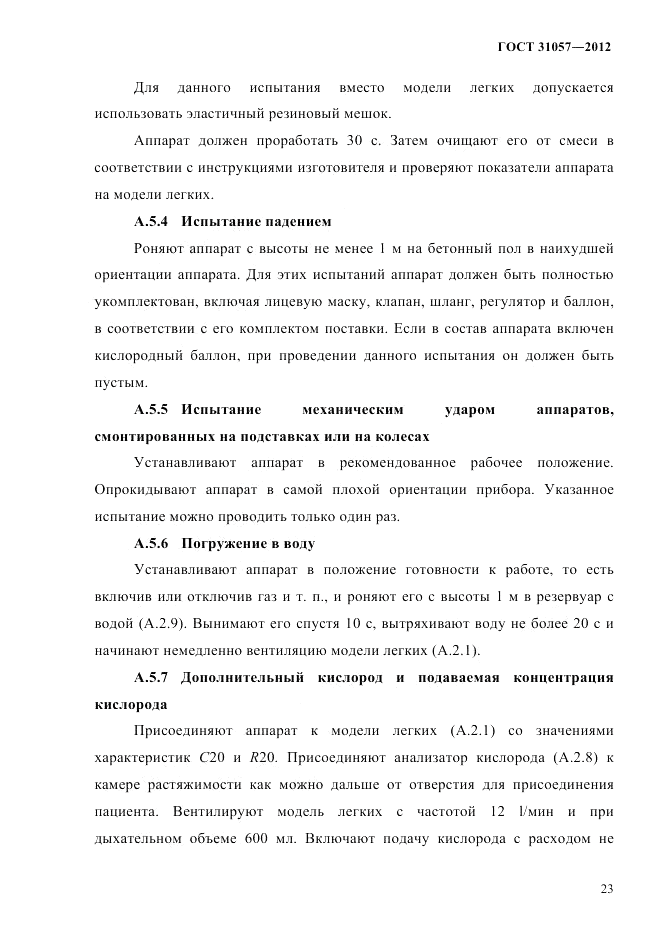 ГОСТ 31057-2012 Аппараты искусственной вентиляции легких для оживления. Общие технические требования и методы испытаний