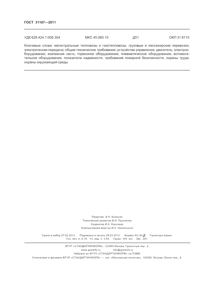ГОСТ 31187-2011 Тепловозы магистральные. Общие технические требования