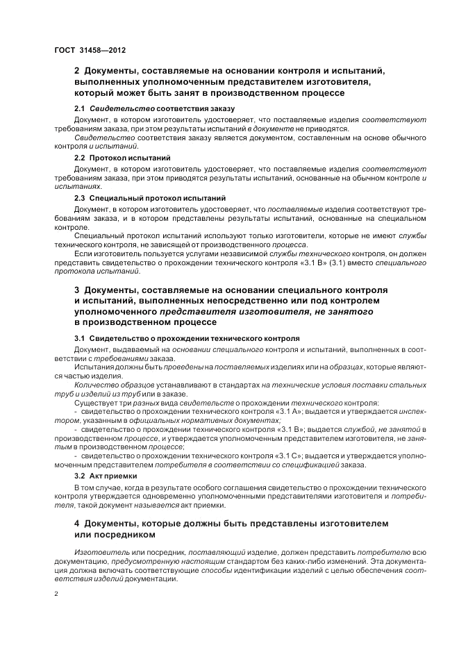 ГОСТ 31458-2012 Трубы стальные и изделия из труб. Документы о приемочном контроле