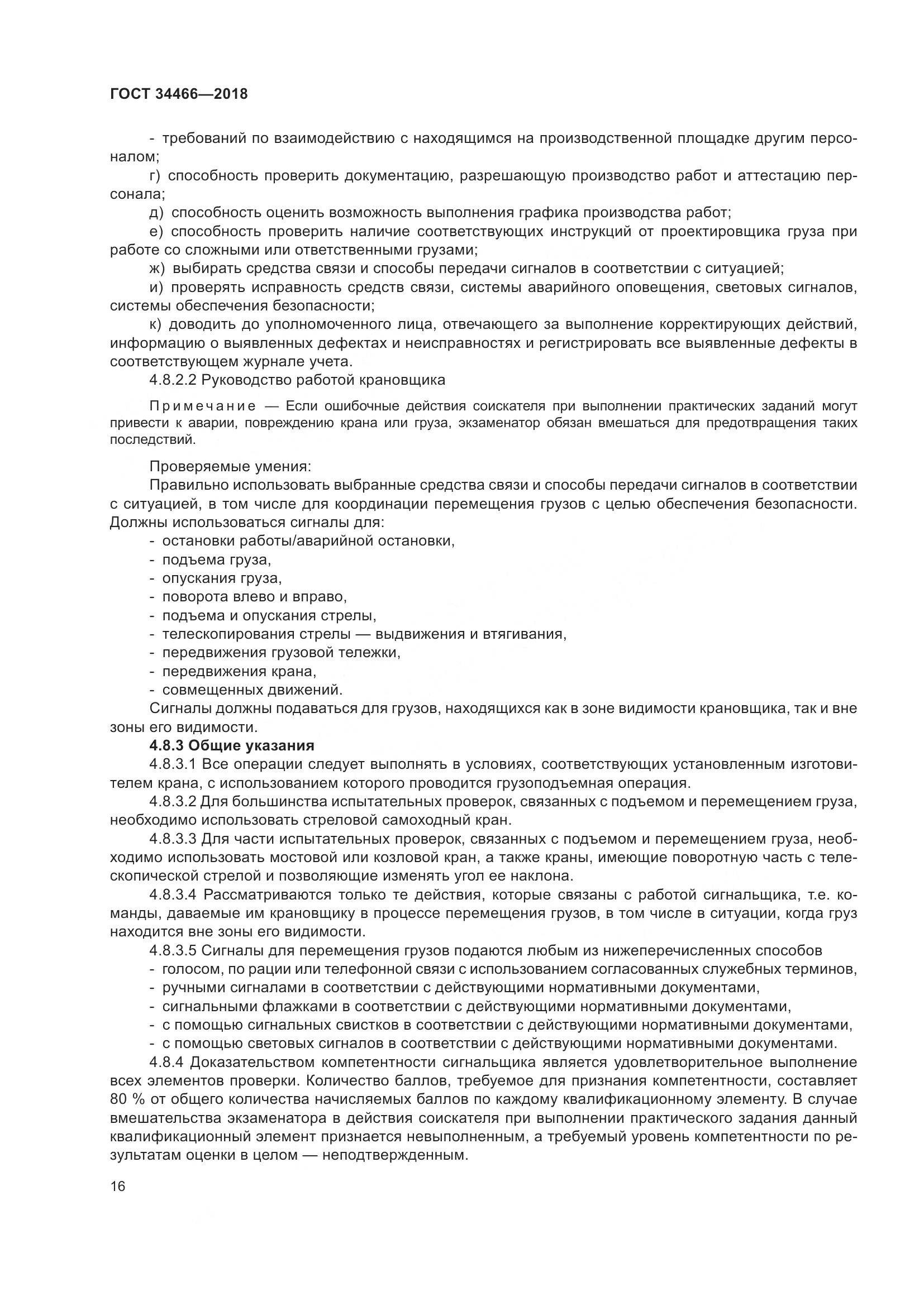 ГОСТ 34466-2018 Краны грузоподъемные. Требования к компетентности крановщиков (операторов), стропальщиков и сигнальщиков