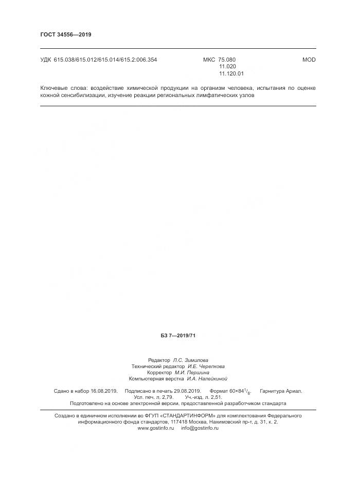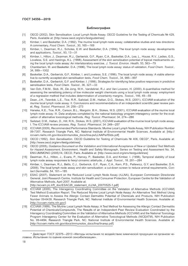 ГОСТ 34556-2019 Методы испытания по воздействию химической продукции на организм человека. Испытания по оценке кожной сенсибилизации методом изучения реакции региональных лимфатических узлов