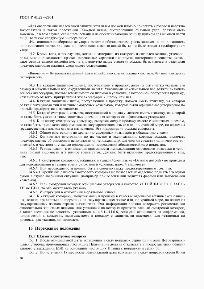 ГОСТ Р 41.22-2001 Единообразные предписания, касающиеся официального утверждения защитных шлемов и их смотровых козырьков для водителей и пассажиров мотоциклов и мопедов