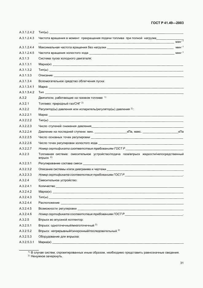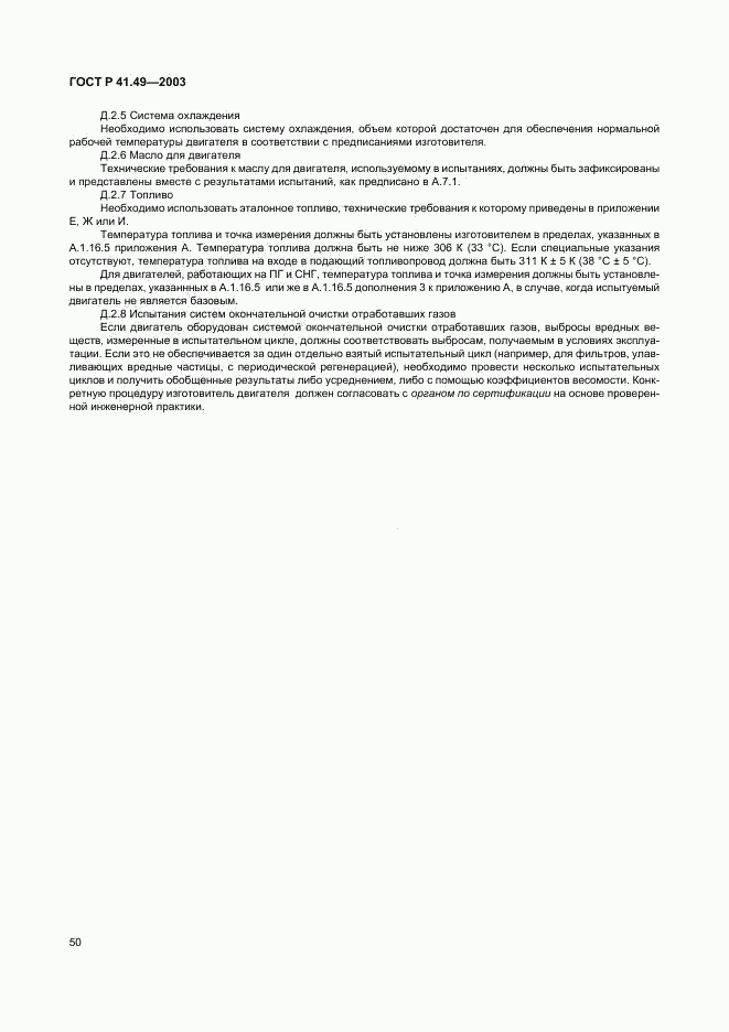 ГОСТ Р 41.49-2003 Единообразные предписания, касающиеся сертификации двигателей с воспламенением от сжатия и двигателей, работающих на природном газе, а также двигателей с принудительным зажиганием, работающих на сжиженном нефтяном газе, и транспортных средств, оснащенных двигателями с воспламенением от сжатия, двигателями, работающими на природном газе, и двигателями с принудительным зажиганием, работающими на сжиженном нефтяном газе, в отношении выбросов вредных веществ