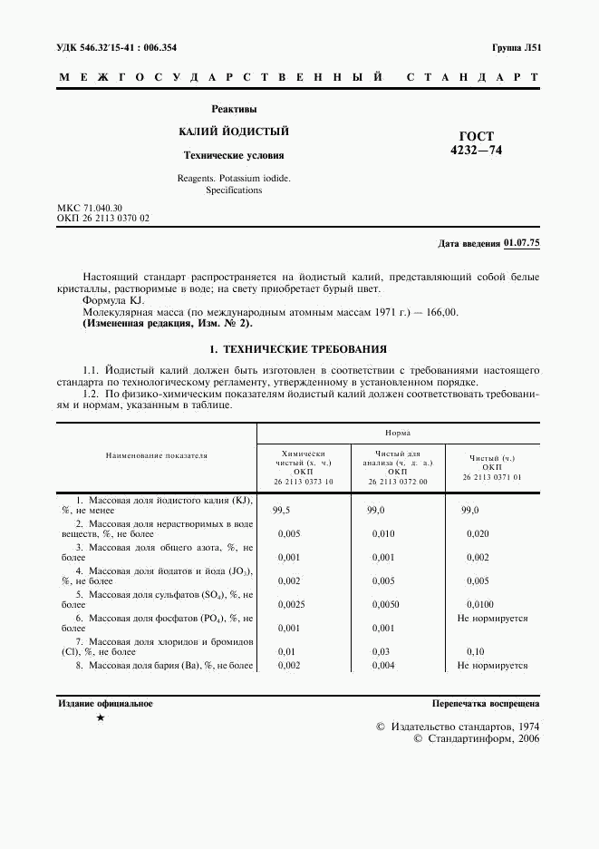 ГОСТ 4232-74 Реактивы. Калий йодистый. Технические условия