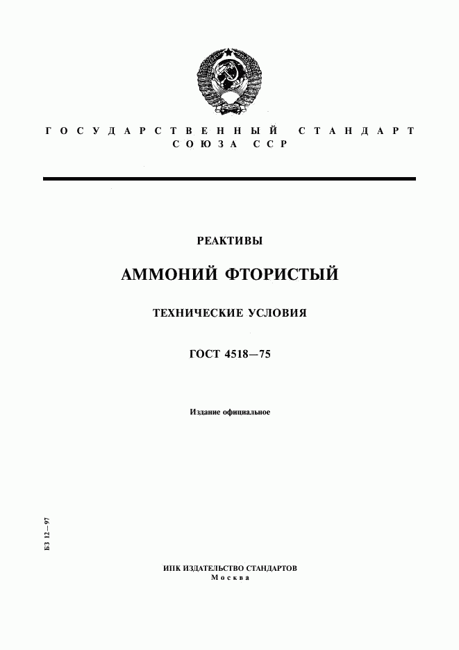 ГОСТ 4518-75 Реактивы. Аммоний фтористый. Технические условия