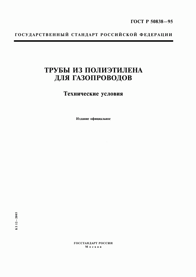 ГОСТ Р 50838-95 Трубы из полиэтилена для газопроводов. Технические условия