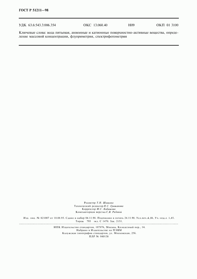 ГОСТ Р 51211-98 Вода питьевая. Методы определения содержания поверхностно-активных веществ