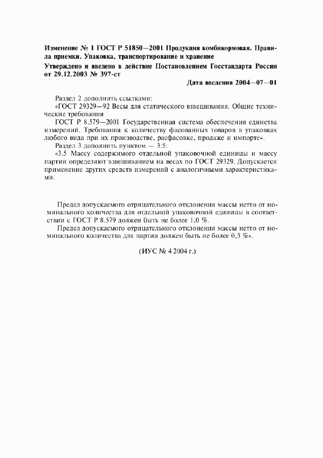 ГОСТ Р 51850-2001 Продукция комбикормовая. Правила приемки. Упаковка, транспортирование и хранение