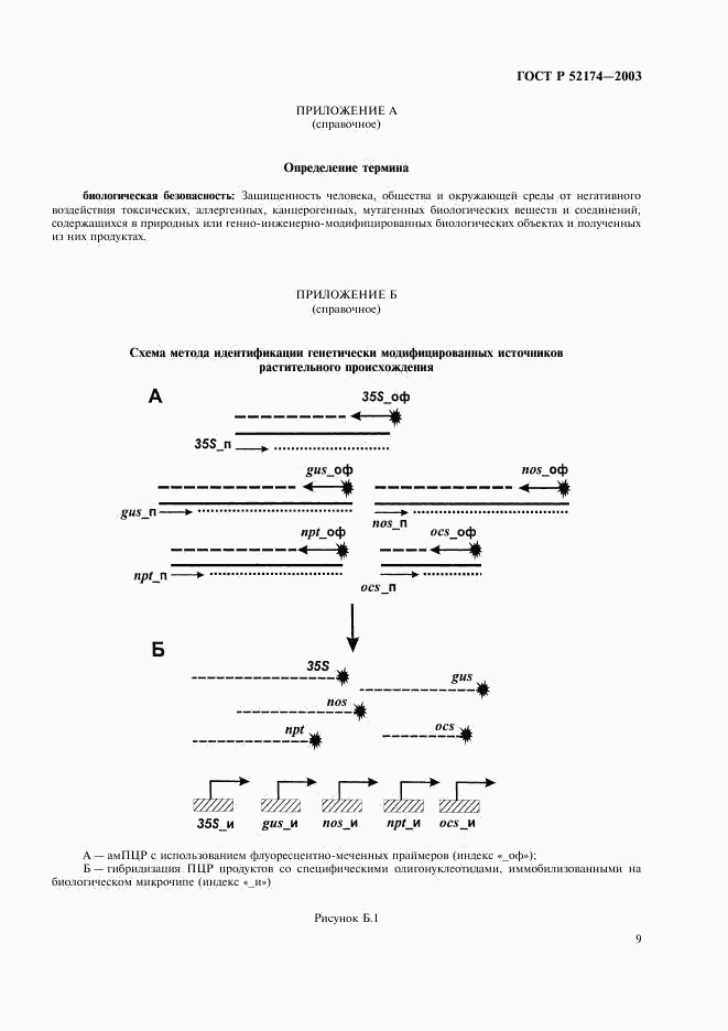 ГОСТ Р 52174-2003 Биологическая безопасность. Сырье и продукты пищевые. Метод идентификации генетически модифицированных источников (ГМИ) растительного происхождения с применением биологического микрочипа